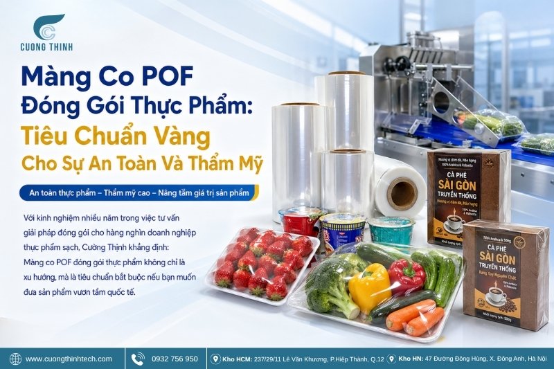Là bao bì màng co qua nhiệt, được chế tạo từ nhựa Polyolefin qua máy ép đùn, sử dụng từ các hóa chất không độc hại và được phép dùng trong thực phẩm. Màng co POF dạng cuộn mỏng, nhẹ, dỏe, dai, không độc hại, không mùi, tỷ lệ co cao và dán sấy dễ dàng. Là công nghệ đóng gói tiên tiến có thể đáp ứng được mọi yêu cầu khắt khe của khách hàng trong mọi lĩnh vực như ngành thủy sản, thực phẩm, bánh kẹo, tập sách, in ấn,lịch vạn niên, gỗ, kem, đồ chơi trẻ em, nhựa gia dụng …. với Màng co POF giá rẻ có thể tiết kiệm chi phí cho doanh nghiệp…Xem thêm