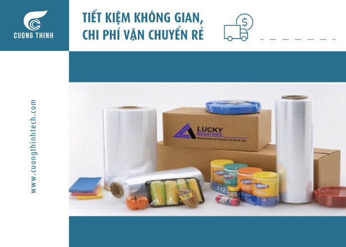 Màng co pof mỏng, nhẹ, theo thống kê thì màng co pof chỉ chiếm 1-2% tổng khối lượng vật liệu đóng gói. Do đó không ảnh hưởng đến trọng lượng sản phẩm, đồng thời tối ưu được chi phí vận chuyển, tiết kiệm được kho lưu trữ.