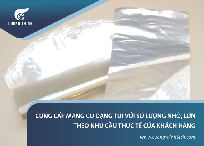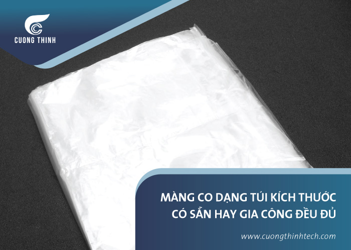 Nhằm đáp ứng nhu cầu đa dạng của khách hàng, Cường Thịnh không chỉ cung cấp màng co dạng cuộn mà còn gia công màng co dạng túi theo yêu cầu của khách hàng cho nhiều ngành nghề, lĩnh vực, sản phẩm khác nhau. Hoặc bạn có thể chọn các mẫu màng co dạng túi với kích thước có sẵn tại Cường Thịnh.